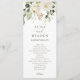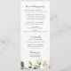 Elegantes Hochzeitsprogramm mit Blume und Grün in Weiß: Dieses Hochzeitsprogramm besticht durch einen wunderschönen Blumenstrauß und ein wunderschönes Blumenstrauß. Die Rückseite hat Platz für Ihre Hochzeitsfeier zusammen mit einem Dankeschön oder in Erinnerung an die Nachricht unten.