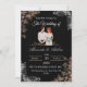 An elegant wedding invitation featuring a romantic illustrated couple framed by delicate florals on a dark, sophisticated background. Perfect for classic, modern, or romantic wedding themes. Fully customizable with your names, date, and event details.