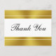 Schwarzes Drehbuch sagt "Danke" auf Gold sehen Postkarte. Imitate Gold Hintergrund ist ein künstlerisches Rendering (keine Folie auf Karte).