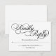 Eine formelle, elegante weiße Hochzeit RSVP mit schwarzer Kalligraphie-Skript.