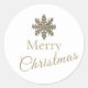 Elegant White Gold Snowflake Frohe Weihnachten Runder Aufkleber