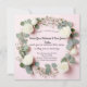 Dieses zeitlose Hochzeitsinklusivdesign besticht durch eine zarte, blumengeschmückte Borte mit weißen Rosen, dem Atem des Säuglings und Eukalyptus-Blätter auf einem weichen pastellrosa Hintergrund. Ideal für Paare, die ein klassisches und romantisches Hochzeitsthema suchen