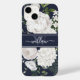Elegant White Roses Greenery Navy Blue Monogram Case-Mate iPhone 14 Hülle