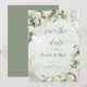 Elegant white roses on a sage green background. Select the "customize" button to change the font style, color, and size.