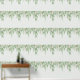 Elegant strukturierte Randtapete mit wunderschönen Aquarellbildern in Grün- und Goldtönen, die Blätter von oben herab hängen. Schöne Gestaltung der Außenräume für jeden Raum Ihrer Zuhause oder Ihres Büros.
