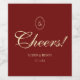 Elegant Wine Red Script "Cheers!" Wedding Wine Label. Customize with bride and groom names, your wedding date, and your initials in a classic monogram style.