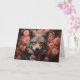 Ein eleganter Wolf in einem Anzug mit rosa Blume, die in den jeden Anlässen die Karte grüßen