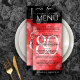 Mit diesem Dinner-Menü, das elegante Buchstaben und sechseckige Konfetti auf rubinroten und schwarzen Hintergründen bietet, fügen Sie elegante Hochzeitsfeiern in die 80. rubinische Welt hinzu. Passen Sie Ihre persönlichen Daten mit Namen, Ehedaten, Veranstaltungsdetails, Menüpunkten und Glückwunschnachrichten an. Design © W.H. Sim. Weitere Informationen unter zazzle.com/expressionsoccasions