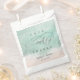 Romantische Küstentaschen mit türkisfarbenem, abstraktem Aquarell und Meereswellen- und Strandhintergrund, gepflegt mit stilvollem Drehbuch und eleganten Schriftart-Details, modern und einfach, ideal für Sandstrandhochzeiten, tropische Hochzeit in Urlaubsort, Meereshochzeiten an der Küste. Sehen Sie sich alle passenden Stücke in der Sammlung an.