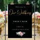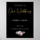 Élégant noir et or mariage script moderne accueil panneau poster modèle de disposent d'un script de texte or design sur couleur arrière - plan noir. Tous les calques ont été déverrouillés afin que vous puissiez également cliquer pour customiser et repositionner le texte, la couleur arrière - plan ou même modifier les tailles ou le type de police.