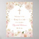 Elégante affiche de baptême fleurie de boho rose. Cadre floral boho rose aquarelle moderne avec croix. Célébrez cette occasion joyeuse avec notre affiche personnalisée qui donnera le ton à un rassemblement mémorable et significatif.