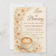 Amour est en train de brasser - Célébrez la future mariée avec cette invitation à la douche nuptiale sur le thème du café. Doté d'élégantes aquarelles en latte, de fleurs douces et de tons chauds et neutres, cet invitation personnalisable est parfait pour un brunch, un café ou une douche nuptiale à café. Personnalisez facilement le nom, la date, l'heure et le lieu. Un choix charmant pour un rendez-vous pré-mariage élégant et intime.