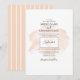 Ce design présente une touche d'aquarelle de pêche élégante. Cette conception simple profite du trait de brosse à l'aquarelle naturelle pour mettre en valeur le texte. La date du mariage est encadrée en noir et blanc. La combinaison de la couleur pêche et des couleurs noir et blanc crée un style sophistiqué, tendance et chic. Design élégant d'invitation de mariage avec des éléments modernes. L'envers du design présente des lignes verticales blanches avec un arrière - plan de pêche. La configuration moderne de la typographie lui donne un style distinct. Des articles de papeterie mariage correspondants et d'autres formats d'invitation de mariage sont également disponibles.