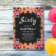 Diese elegante, blumengeschmückte Einladung eignet sich perfekt für einen modernen Herbstgeburtstag. Das romantische Design ist in Rosa, Rosa und Orange gehalten, die Rose sind mit einer eleganten, weißen Typografie auf schwarzem Hintergrund.