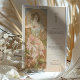 Bringen Sie Ihrem Hochzeitsempfang eine zeitlose Schönheit mit dieser exquisiten Jugendstil-Karte, die von den berühmten Werken von Alphonse Mucha inspiriert wurde. Die Karte mit einer ruhigen Göttin, umgeben von sanften rosa und grünen Blumenakzenten, bewundert den ätherischen Charme der frühen Kunst des 20. Jahrhunderts. Die aufwändigen Details in den Kunstwerken verleihen dem Design Eleganz, während Pastelltöne und erdige Farbtöne sich harmonisch in ein romantisches, Vintages Ambiente einfügen. Ideal für Paare, die die klassische Kunst schätzen und Eleganz in ihre Hochzeitsarbeit einbringen möchten.