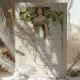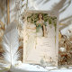 Mit dieser atemberaubenden, im Jugendstil inspirierten Getränkekarte stärken Sie Ihre Hochzeitsfeier. Die Vorderseite zeigt eine faszinierende Abbildung einer Regalfrau in einem fließenden grünen Gewand, das mit zarten Blumenelementen und einer goldenen Krone geschmückt ist. Set vor einem reichen grünen und goldenen Hintergrund. Dieses aufwändige Kunstwerk strahlt Eleganz und zeitlose Schönheit aus und macht es zu einer perfekten Ergänzung Ihrer Hochzeitsdekoration. Die Rückseite ist mit einem edlen botanischen Emblem in Gold und Grün geschmückt, das eine Touch Vintagen Charmes verleiht. Auf dieser Karte finden Sie eine raffinierte Auswahl an Cocktails, Bier, Wein und Spirituosen, die Ihren Gästen ein angenehmes Erlebnis garantieren.