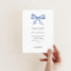Mit eleganten Kalligraphie-Schriftart und einem wunderschönen Baby-Blue-Bogen-Akzent lädt diese individuell gestaltbare Einladung zum Feiern einer besonderen Ankunft ein. Ideal für eine schicke Babydusche, die sich durch ihre Eleganz auszeichnet, ist dieser Download der erste Schritt, um dauerhafte Erinnerungen zu schaffen. Machen Sie sich bereit, mit Eleganz und Charme zu feiern!