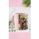 Diese elegante rosa Best Mama Ever Tasse ist eine Zwei-Foto-Vorlage, die mit Ihren Namen personalisiert werden kann. Die Schrift und die moderne Typografie mit Herz machen das Design einzigartig und perfekt für den Muttertag.