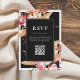 Moderne Hochzeit im Herbst Rsvp-Karten mit eleganten boho Fall floralen Akzente der Dahlia-Blume und Herbst botanischen Blätter, minimalistische Typografie Design auf schwarzem Hintergrund. Fügen Sie Ihren eigenen personalisierten QR-Code mit einer eigenen Hochzeitswebsite url hinzu.