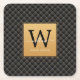 Eleganter Black Gold Monogram, Initial Script Modern Square Paper Untersetzer. Der luxuriöse schwarze und goldene Hintergrund.