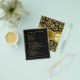 Eleganter schwarz-metallischer goldfarbener Vintager Blumendampfer, Nagelspion Flyer. Elegante, coole Girly und Wirble Service-Menüliste.