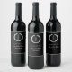 Elegante Black Monogram Wreath Wedding Weinetikett