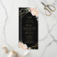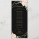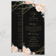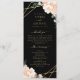 Hier ist das perfekte Programm für Ihre kommende Hochzeit. Wenn Sie schwarz mit Gold und Blumen Liebe, hier ist Ihre perfekte Übereinstimmung. Dieses Design besticht durch elegante Pfannkugeln und Rose in Farbtönen wie Pfirsich und Creme, die in der Goldfolie der Imitate umrissen sind, sowie durch eine geometrische Form der Imitate aus Goldfolie, die die Details Ihres Hochzeitsprogramms mit schwarzem Hintergrund auf der Vorder- und Rückseite umschließt. Mit den bereitgestellten Vorlagenfeldern ist der gesamte Text leicht personalisiert. Karo in der Kollektion für zusätzliche Hochzeitssuite-Produkte. Wenn Sie eine Designfrage haben oder dieses Design auf einem anderen Produkt sehen möchten, kontaktieren Sie mich bitte unter jschmidtdesignworks@gmail.com. Design © Judith Schmidt.