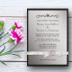 Dies ist eine elegante formelle Hochzeitseinladung in verbranntem Silber mit einer dramatischen schwarzen Grenze. Ein verziertes Schwarz-Schriftrolldesign schmückt den oberen Teil des silbernen Textes, und ein Imitat mit weißem Satin-Look Bändchenbild wird unten durch ein Ringbild miteinander verbunden. Ihr eigener Text ist schwarz, und es gibt viel Platz. Die Rückseite der Einladung ist schwarz. *Bitte beachten Sie, dass das Bild gedruckt ist und kein Metall oder Band enthält.