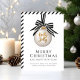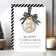 Personnalisée Personnalisée Élégante Bande Blanche Noire Joyeuse Carte Bauble De Noël.