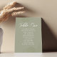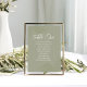 Moderne Empfang-Tischnummer und Hochzeitsvorstellung mit Kalligraphie-Schrift, eleganter Empfang-Dekoration, schicke Typografie und botanisch-grüne Blätter, perfekt für eine tropische Hochzeit mit Palmen Blätter, Grünpflanzen, ein einzigartiges Design, ideal für Hochzeiten an der Küste