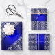 Elegante Blau- und Silberstreifen-Muster Geschenkpapier Set