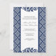 Diese klassische und elegante Hochzeitseinladung wird in einem marineblau-blauen Damast erstellt. Diese Hochzeitseinladung ist ideal für eine formale Hochzeit. Passend speichern Sie die Datumskarten, Antwort, Empfang, Richtung und Dankeschön Karten sind ebenfalls verfügbar. Design von Mujka