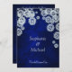 Dieses ist eine stilvolle, reiche schauende Hochzeitseinladung mit den schönen silbernen weißen Schneeflocken, die gegen einen drastischen Königsblausteigungshintergrund fallen. Die Vornamen der Braut und des Bräutigams werden der Front, plus den kundengerechten Text nahe der Unterseite, "zwei werden eine" hinzugefügt. Sie können sie zu allem leicht ändern, das Sie möchten, oder löschen Sie es völlig. Die Rückseite hält Ihren Hochzeitstext im Silber auf dem gleichen blauen Hintergrund. Vervollkommnen Sie für eine Winterhochzeit!