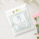 Elegante Geschenktüten für die Brause-Party mit großem millennium-inspirierten vintage-grünen Muschel- und blauen floralen Wasserfarbrahmen, einer zarten blauen Coquette-Schleife-Wasserfarbe, "Liebe + Danke" in eleganter blauer Kalligrafieschrift dargestellt und dem Namen der Braut und dem Datum der Brause in klassischer Serif-Typografie.