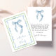 Stilvolle und verspielte Dankeskarten für die Brautparty mit einer vintage-grandmillenial-inspirierten grünen Kammuschel- und blauen floralen Wasserfarben-Rahmen, einer eleganten blauen Schleife und "mit Liebe + Dank" in einer blauen Kalligrafie-Schriftart. Auf der Rückseite können Sie Ihre Dankesnachricht in einfacher moderner Schrift personalisieren und Ihren Namen in einer signaturähnlichen Schrift hinzufügen oder für handschriftliche Notizen leer lassen.