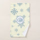 Elegante blaue Schneeflocken im weißen Hintergrund Badhandtuch Set