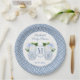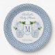 Elegante blaue und weiße Monogramm-Blumenspulendus Pappteller