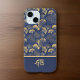 Elegante Blue Gold Ginkgo Blätter mit Name Monogra iPhone 16 Hülle