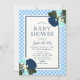 Elegante Blumen-Baby-Dusche mit blauen Rose, Minze und gelben Blumen, grünen Blätter mit weißer Mitte und blauen Rahmen und einem süßen, babyblauen Gingham-Hintergrund. Die Einladung hat eine blaue Rückseite. Es ist eine perfekte Einladung für eine Babydusche. Karo mehr Babydusche hier https://www.zazzle.com/rosewoodandcitrus/gifts?cg=196748758771183969?rf=238364477188679314 Persönliche Einladung mit Ihren Daten durch Ersetzen des Platzhaltertextes. Für weitere Optionen, wie zum Beispiel den Schriftart, die Textgröße/Schriftfarbe, den Abstand zwischen den Buchstaben zu ändern oder um den gebogenen Text zu kontrahieren oder zu erweitern, klicken Sie auf die Schaltfläche "Anpassen". *Bitte beachten Sie, dass das Zazzle-Wasserzeichen, das in der Zoomvorschau angezeigt wird, NICHT auf dem gedruckten Endprodukt erscheint. © Rosewood and Citrus