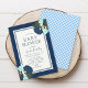 Elegante Blumen-Baby-Dusche mit blauen Rose, Minze und gelben Blumen, grünen Blätter mit weißer Mitte und blauen Rahmen vor blauem Hintergrund. Die Einladung hat einen süßen, blauen Gingham auf der Rückseite. Es ist eine perfekte Einladung für eine Babydusche. Karo mit Babydusche hier https://www.zazzle.com/rosewoodandcitrus/gifts?cg=196748758771183969?rf=238364477188679314 Personalisieren Sie diese Einladung mit Ihren Daten, indem Sie den Platzhalter-Text ersetzen. Für weitere Optionen, wie zum Beispiel den Schriftart, die Textgröße/Schriftfarbe, den Abstand zwischen den Buchstaben zu ändern oder um den gebogenen Text zu kontrahieren oder zu erweitern, klicken Sie auf die Schaltfläche "Anpassen". *Bitte beachten Sie, dass das Zazzle-Wasserzeichen, das in der Zoomvorschau angezeigt wird, NICHT auf dem gedruckten Endprodukt erscheint. © Rosewood and Citrus