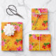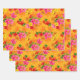 Blumensträuße auf orangefarbenem Hintergrund sind auf diesen Packpapier-Blättern zu sehen, was für jeden Anlass Spaß macht.