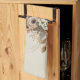 Ein Küchentuch mit einem hübschen Blumenstrauß, umgeben von bräunlichen Bronzegräsern und Blattwerk mit Federakzenten. Ein hellbrauner, cremefarbener Hintergrund mit einem schwachen Damast-Muster.