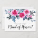 Elegant werden Sie meine Trauzeugin Kartendesign mit hellrosa Aquarellfarben, blau-grauem Blattwerk auf weißem Hintergrund.