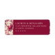Dies ist ein Bild im anspruchsvollen Stil mit einer eleganten Adresskarte vor einem reichen Maroenhintergrund. Die linken und rechten Ränder sind mit komplizierten Blumenmustern in tiefem Rot verziert, was dem Design einen Hauch von klassischem Charme und Wärme verleiht. Der Text wird in einer sauberen weißen Serif-Schriftart präsentiert, die "Lauren & Benjamin" zusammen mit ihrer Adresse in Atlanta, Georgia, anzeigt. Es strahlt ein Gefühl zeitloser Eleganz und Raffinesse aus und ist somit perfekt für formelle Einladungen oder persönliche Korrespondenz.