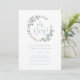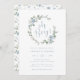 Elegante Blumendusche Einladung. Die elegante und romantische Hochzeitssuite Dusty Blue Floral verfügt über wunderschöne handbemalte Aquarelltöne, cremefarbene Rose und schlaue grüne Blätter, die als stilvoller Kranz angeordnet sind. Finden Sie passende Artikel in der Dusty Blue Wreaths Wedding Suite.