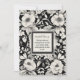 Das Bild weist einen rechteckigen Rahmen mit einem leeren Zentrum auf, umgeben von einem aufwändigen und eleganten Blumendesign. Die Blume und Blätter werden in einem monochromen Schwarz-Weiß-Farbschema gerendert, wodurch ein auffallender Kontrast zum dunklen Hintergrund entsteht. Das Blumenmuster ist detailliert und verziert, mit verschiedenen Blume und Laubbäumen, die sich um den Rahmen verflechten. Die Ästhetik ist klassisch und raffiniert, sodass sie für verschiedene dekorative Zwecke geeignet ist. In der Mitte steht in eleganten kursiven und gedruckten Schriftart der Text "Brautparty", gefolgt von einer herzlichen Botschaft: "Mit Herzblut und Champagner zum Schlucken laden wir Sie ein, die bevorstehende Reise der Braut durch den Gang zu feiern." Der Platzhalter "[Name der Braut]" gibt an, wo der tatsächliche Name der Braut bei der Personalisierung der Einladung eingefügt werden soll.