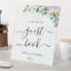 Ein farbenfrohes Gästebuchschild mit wunderschönem botanischem Blattwerk in Aquarell und Eukalyptus-Blätter. Genießen Sie das elegante, gelb, blau und weiß gestaltete Hochzeitsdekor. Dieses elegante Design mit zarten gelben Blüten, sanften weißen Blumen und eleganten blauen Akzenten verleiht diesem Zeichen zeitlosen Charme und Romantik. Die raffinierte Typografie und die luftigen Aquarelldetails schaffen eine frische und stilvolle Ästhetik, die sich perfekt für die Begrüßung der Gäste eignet, wo Sitzgelegenheiten oder wichtige Details hervorgehoben werden. Ideal für Hochzeiten im Frühling und im Sommer, für Gartenfeiern oder für Ausflüge in die Natur. Dieses hübsch gestaltete Schild verleiht Ihrem Tag eine Touch von Eleganz und Eleganz.
