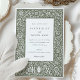 Die faszinierenden und naturalistischen Entwürfe von William Morris inspirierte diese wunderschön gestaltete Hochzeitseinladung. Die Einladung zeichnet sich durch ein ausgeklügeltes Blumenmuster in einer reichen Palette von Waldgrün, Salbei, Oliven und Elfenbeinfarben aus, die die Eleganz der Natur mit einer raffinierten Drehung hervorhebt. Die Blumenkunst verkörpert den Charme der Kunst- und Handwerksbewegung, wobei jedes Detail sorgfältig gefertigt wurde, um eine zeitlose und romantische Ästhetik zu schaffen. Ideal für Paare, die eine Mischung aus klassischer Handwerkskunst und modernem Design suchen, diese Einladung Set den Ton für eine Hochzeit in Schönheit und Grazie. Hochwertiges Papier sorgt dafür, dass sich jede Einladung so luxuriös anfühlt, wie sie aussieht, und gibt Ihren Gästen eine greifbare Erinnerung an Ihren besonderen Tag.