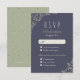 Handgezeichnetes verziertes Blumendesign auf mariniertem Hintergrund, elegant und elegant, ideal für Gartenhochzeiten im Freien, Landschaften, rustikale Hochzeiten oder eine alte Hochzeit im Winter oder Sommer. Natürliches Farbschema, Salbei grün, dunkle Marine und hellbeige. Passen Sie Ihre eigene RSVP-Karte für Ihre Hochzeit an! Hier finden Sie alle passenden Stücke dieser rustikalen Blumensammlung.