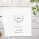 Mit diesem bearbeitbaren Design personalisieren Sie Ihre Hochzeitsnapkins einfach. Das minimale elegante Typografie-Design in Schwarz-Weiß-Farbe mit einer benutzerdefinierten Monogramm, umgeben von einer Blumenkranz-Illustration.